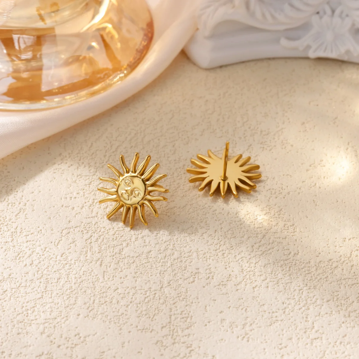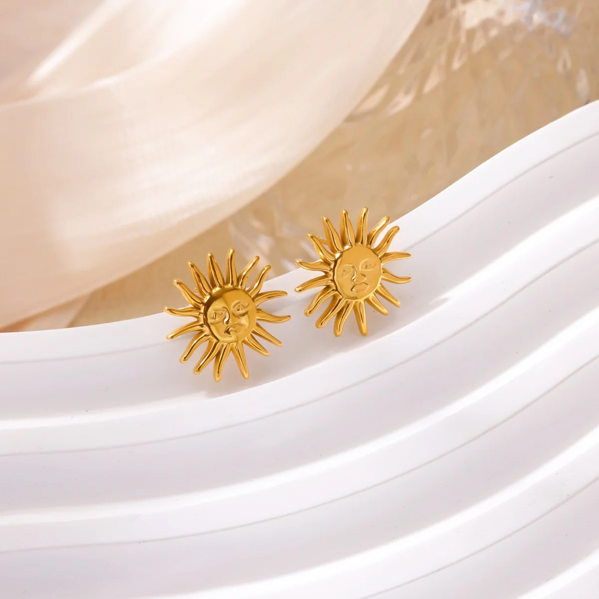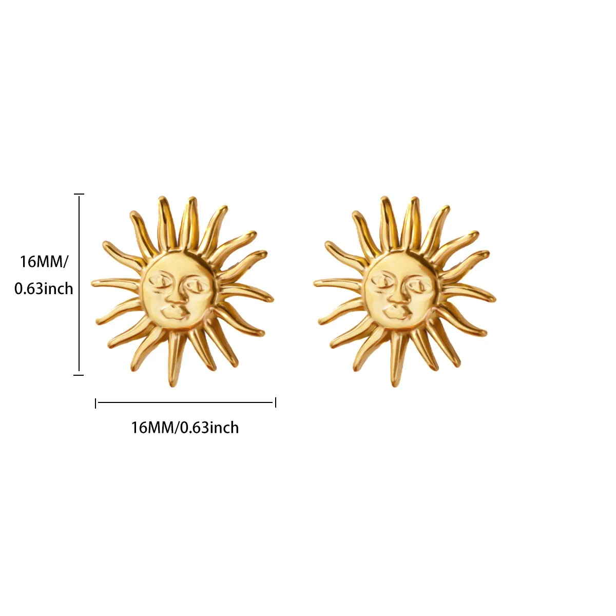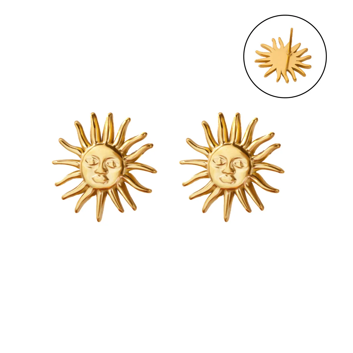 Punk Stainless Steel Sun Earrings For Women Gold Plated Geometric Sun Face Earring Wedding Aesthetic Waterproof Jewelry Gift